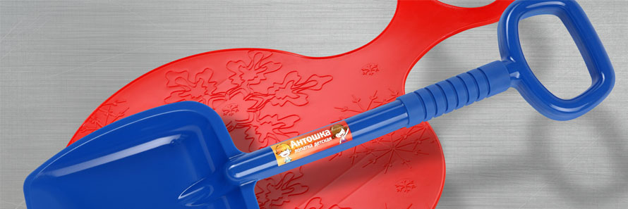 Лопатка детская «Антошка» 50 см имеет удобную ручку и производится в различных цветах, вызывая интерес как у мальчиков, так и у девочек в зимний сезон. Санки-ледянки «С ветерком» производятся из первичных материалов в двух цветах. Имеют интересный рисунок и высокую надежность (не ломаются на горках).