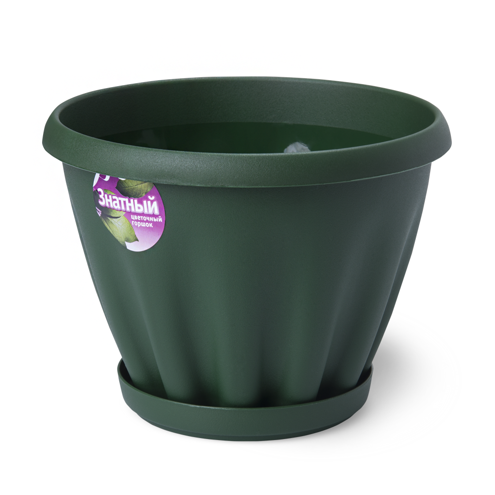 Горшок цветочный "Знатный" темно-зеленый c поддоном d225 3,9 л